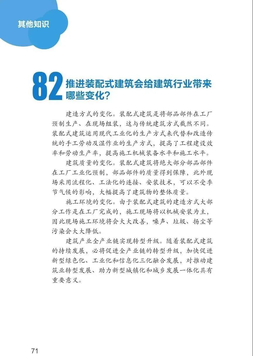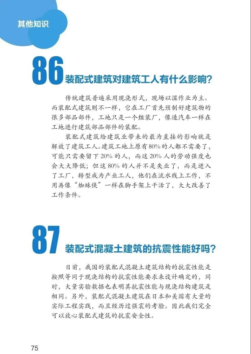 那么什么是裝配式建筑?和綠色建筑是什么關(guān)系?有哪些類別?哪些標(biāo)準(zhǔn)?。。。等等問題你都明白嗎?讓我們來看看《裝配式建筑100問》,全方位了解裝配式建筑。